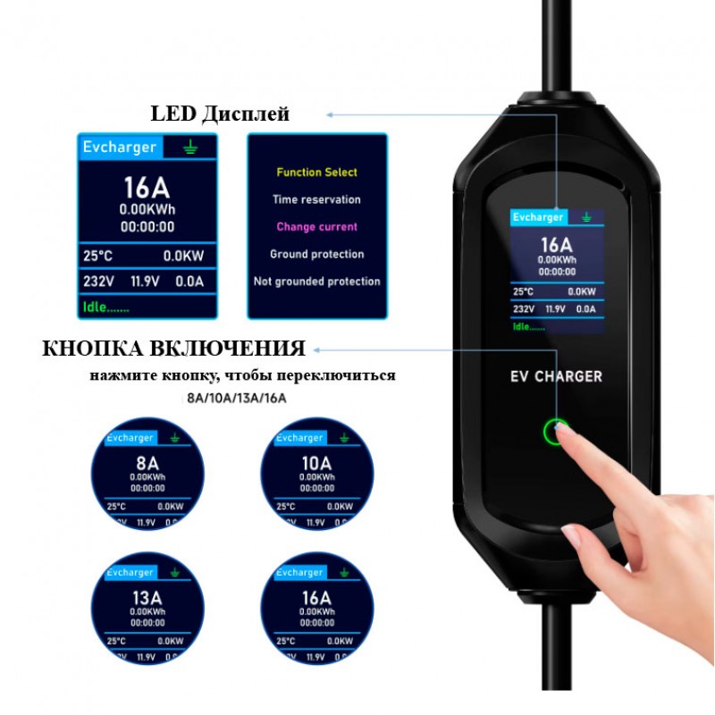 SPG3E 3.5kw Type GB/T- портативное зарядное устройство для электромобилей со светодиодным дисплеем, c максимальной мощностью 3,5 кВт и разъемом GB/T. Данный зарядник представляет собой идеальное решение для зарядки электромобиля в дороге или дома.